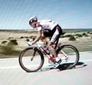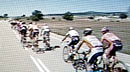 Goolen attempts escape from group, as peloton closes in. Calvo