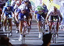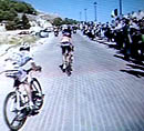 1km mark, only 5" seperate 2 leaders from peloton. Etxebarria