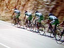 peloton is being led by a confident Team Telocom, working for