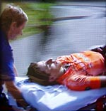 Il a chuté violemment contre le rail de sécurité,